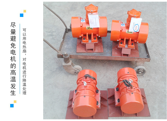 2、一般發(fā)生高溫都是在夏季發(fā)生的,可以用電熱扇,對電機(jī)進(jìn)行降溫處理;冬季一般不會發(fā)生這種情況;