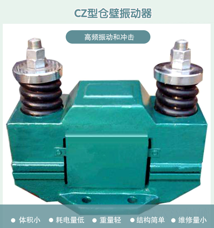 CZ型倉壁振動器具有體積小、耗電量低、重量輕、結構簡單、和維修量小的特點。